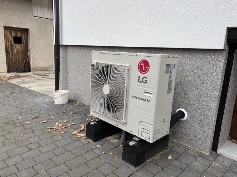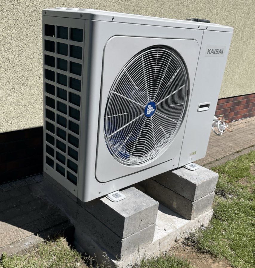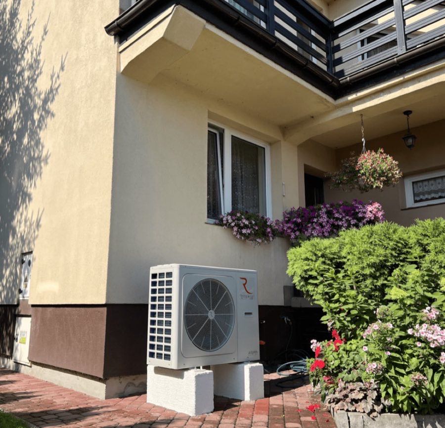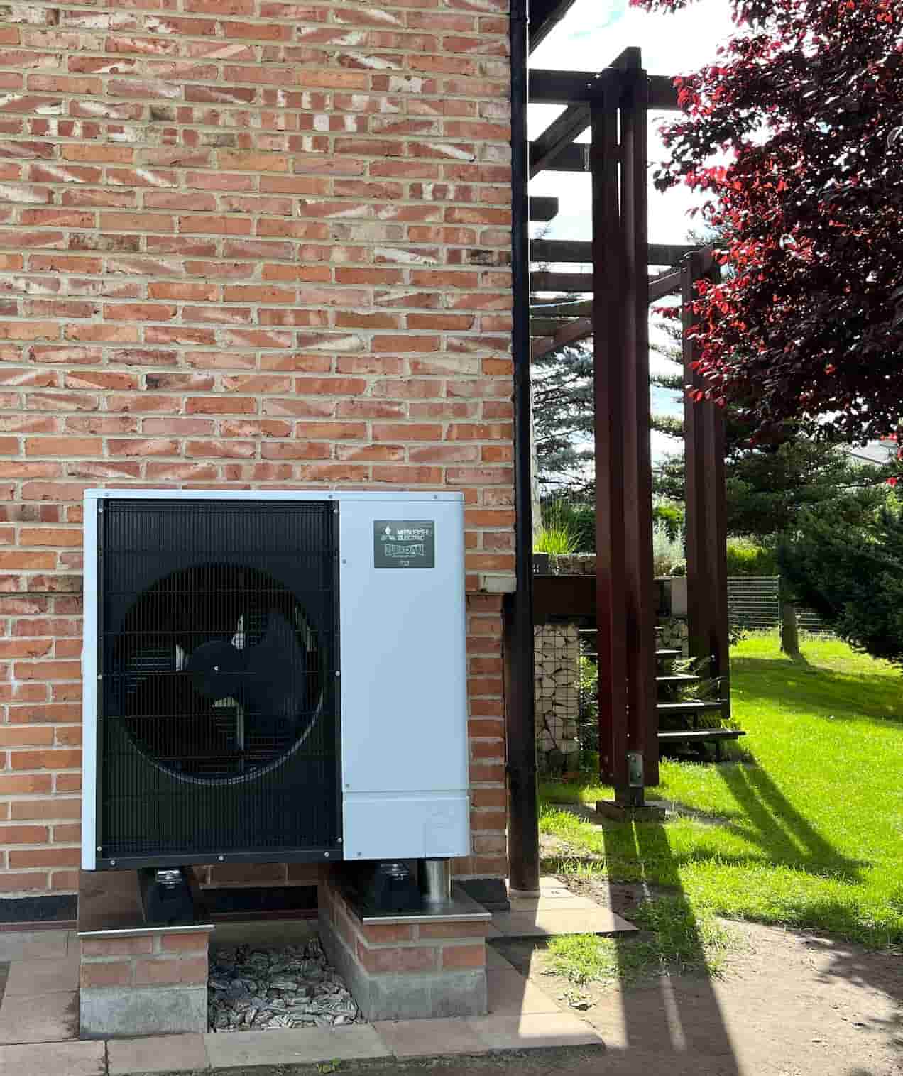Dla powietrznej pompy ciepła wymagane jest jedynie stabilne podłoże na zewnątrz (fundament lub wsporniki) oraz miejsce na jednostkę wewnętrzną lub zasobnik wody wewnątrz budynku. Nie potrzebujesz komina, wentylacji nawiewnej w kotłowni ani składu opału.